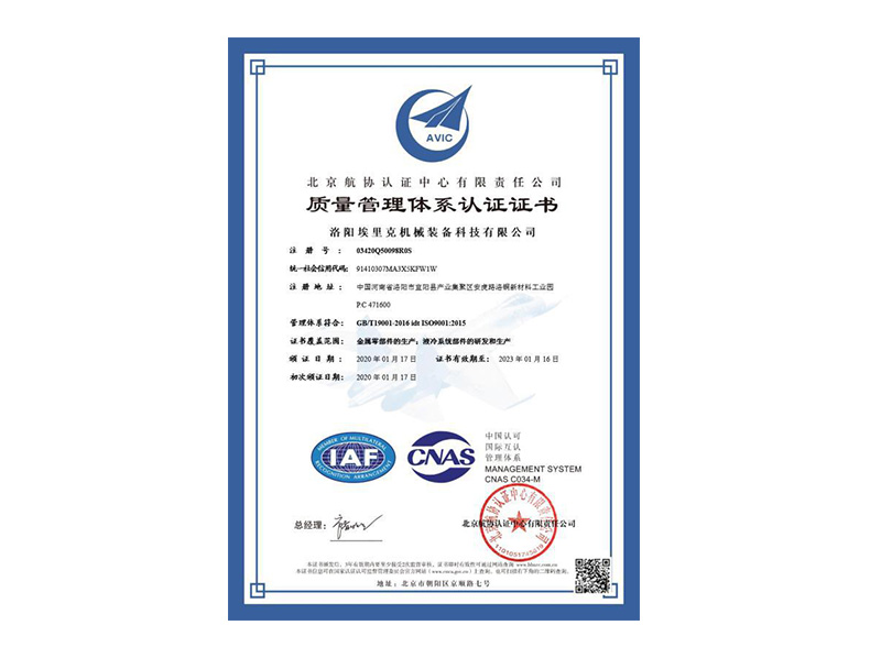 公司通過了GB/T19001-2016質量管理體系認證,體現(xiàn)了公司卓越的質量控制水平和綜合競爭力。
